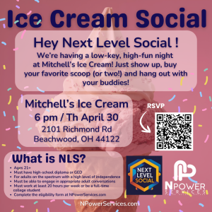 Hey NLS! We’re having a low-key, high-fun evening at Mitchell’s Ice Cream in Beachwood. Just show up, buy your favorite scoop (or two!) and hang out with your buddies!