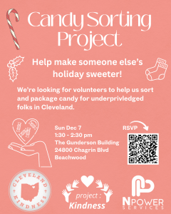 Help us make someone else’s holiday sweeter! We’re sorting and packaging candies to include in meal kits for homeless families in Cleveland. Join us as we partner with Cleveland Kindness.