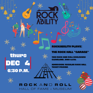Jingle Bell Rock n Roll! Check out the Rock Hall and hear RockAbility, northeast Ohio’s favorite band of neurodiverse adults bring all the fun rockin’ songs to the Garage! Admission cost is simply a ticket into the Rock N Roll Hall of Fame!